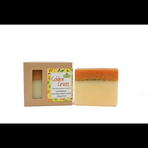 Golden Grass - Lemongrass & Turmeric Handmade SoapRefresh your skin naturally with our Lemongrass & Turmeric Handmade Soap — a vibrant blend of herbal ingredients that gently cleanse and rejuvenate your skin.