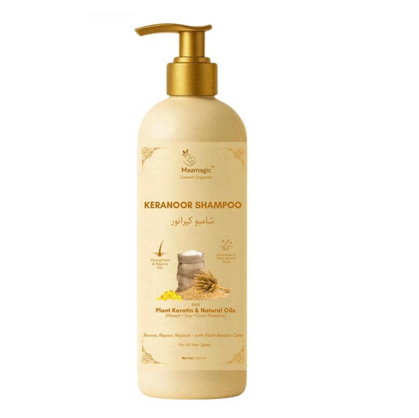 It provides 100% more shine and adds an anti-humidity and anti-frizz effect that lasts up to 4 days.Maamagic Zeenats Organics presents Keranoor Shampoo – Dubai Edition, infused with Plant Keratin and Natural Oils from Wheat, Soy & Corn Proteins. Revive, repair & rejoice with luxurious hair care that strengthens, smoothens, and restores natural shine. 🌾🌽 For all hair types.