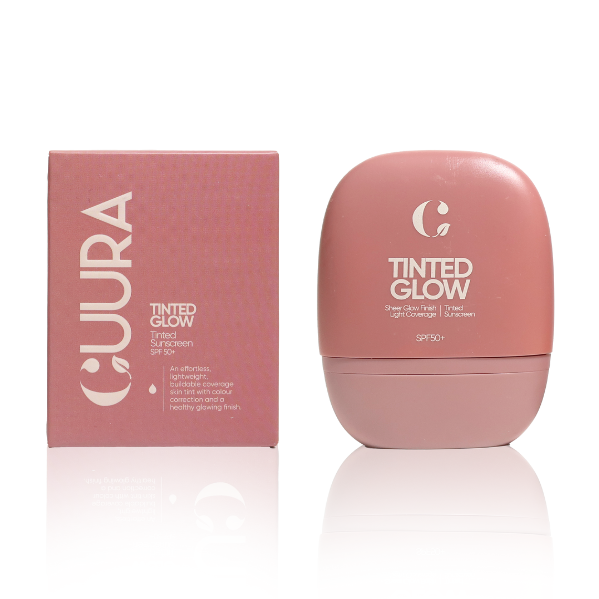 Tinted Glow is Cuura’s first skin-perfecting tinted sunscreen. It gives lightweight, buildable coverage with a soft matte, blurring finish. It evens out your tone, adapts to your shade, and adds a natural glow — all without clogging pores or feeling greasy.