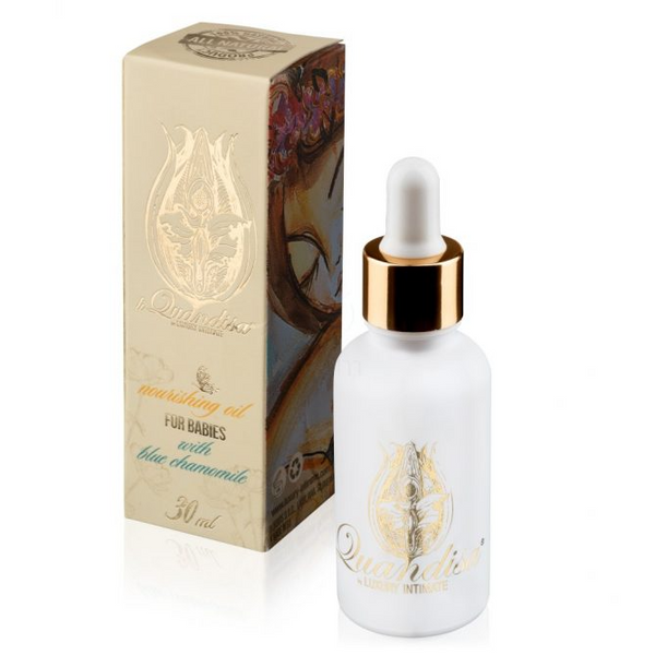 When I first became a mom in 2015, I first came across a selection of baby cosmetics. I was amazed at how many unnecessary and even harmful ingredients care products for children and pregnant women contain. Since I started using all-natural cosmetics years ago, I was even more focused on offering my child the best. As you know, at Luxury intimate, we have paid a lot of attention in recent years to raising awareness of the importance of intimate care. During this time, we also received many messages from mothers who wanted to help and soothe inflammation in their babies, toddlers, and children up to reaching puberty. We have set ourselves to provide parents with a carefree use of cosmetics for children with a selection of high-quality products, proven and natural formulas. Last year, our professional team was set to work and carefully selected the right plants and vegetable oils best for helping our little ones. Our efforts and commitment paid off. We are proud to present the new, utterly natural intimate baby oil. It contains only the best ingredients such as blue chamomile essential oil, Damask rose oil, sandalwood oil, honey, jojoba, almond oil, sea buckthorn, black cumin oil, and sunflower oil. The intimate baby oil will prevent and soothe and protect your toddler’s skin under diapers. Extremely gentle and natural composition soothes red skin, nourishes, and moisturizes dry irritated skin. Diapers can irritate, so the oil is also recommended for care and protection as it nourishes and soothes the skin with carefully selected natural ingredients.
