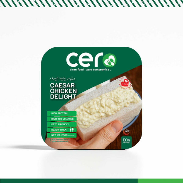 Cero Caesar Chicken Delight combines tender chicken with a creamy Caesar-style dressing, made from 100% clean label ingredients. Rich, savory, and free from additives—classic flavor you can feel good about.Nutritional Highlights🍗 High in Protein — lean chicken breast🌿 Source of Niacin (B3) & B6 — supports energy & vitality🛡️ Provides Selenium, Zinc & Choline — immune & cognitive health✨ Rich in Vitamin A & E — natural antioxidant protection🥗 Balanced profile of protein + healthy fats Clean Label Promise• Familiar, recognisable Caesar recipe• No artificial flavours, emulsifiers or stabilisers• Premium lean chicken with a clean dressing base