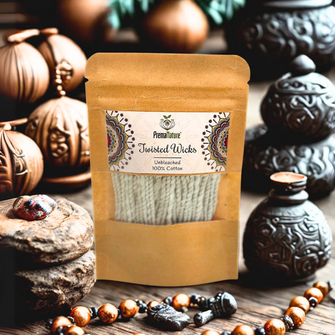 A daily essential for lighting lamps, they burn with a steady, clean flame that carries prayers, devotion, and peace. Perfect for puja, meditation, and auspicious occasions, these wicks uphold tradition while supporting women’s livelihoods. Conveniently packed in a resealable pouch to maintain purity and ease of use.