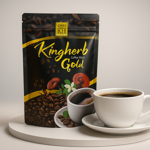 🌿 Houttuynia Powder: Strengthens immunity and supports anti-inflammatory effects🍄 Cordyceps Powder: Boosts energy, restores strength, and enhances vitality🌰 Ganoderma Extract: Promotes balance, supports heart and liver health🌾 Polydextrose & Inulin: Natural fibers that improve digestion and gut healthEvery cup of King Herb Coffee Black Gold delivers more than a rich and bold coffee flavor — it provides natural nourishment from carefully selected herbal ingredients.Benefits You Can Feel
