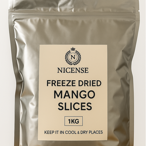 Enjoy the rich tropical taste of Nicense Freeze Dried Mango with Natural Sugar – Premium Quality 1kg Pack x 5.Made from perfectly ripe mangoes, each slice is gently freeze-dried to lock in: