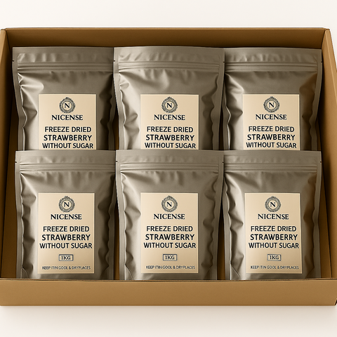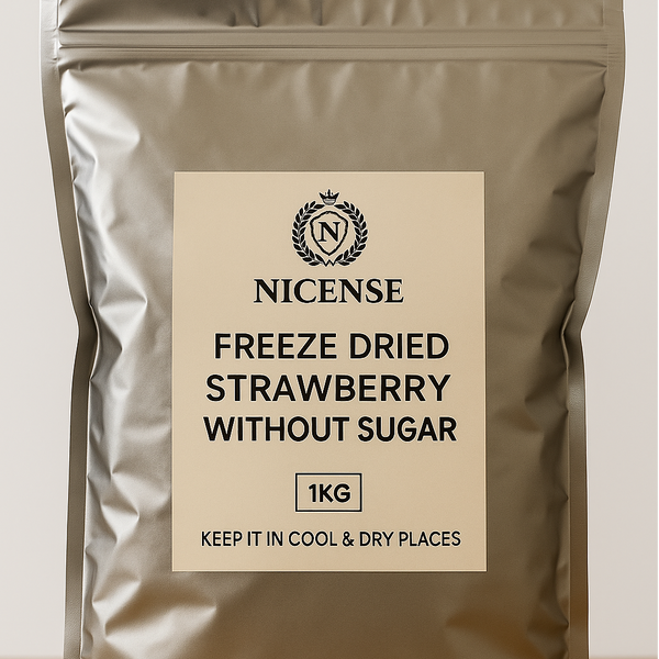 Experience the pure, natural taste of strawberries with Nicense Freeze Dried Strawberry Without Sugar – Premium Quality 1kg Pack x 5.Made from carefully selected ripe strawberries, each slice is freeze-dried to preserve:✔️ Natural color✔️ Pure strawberry flavor✔️ Original aroma✔️ 100% nutrition