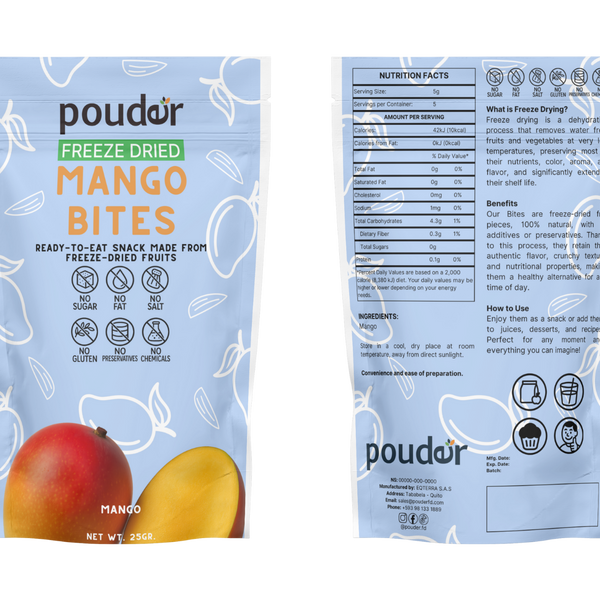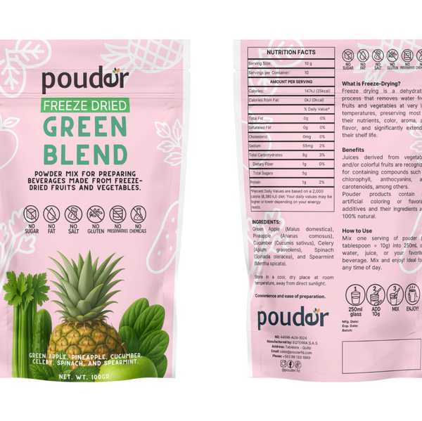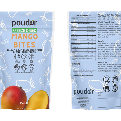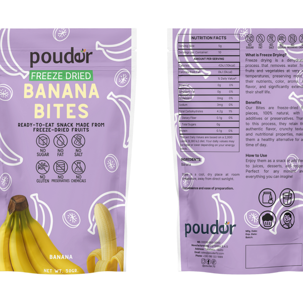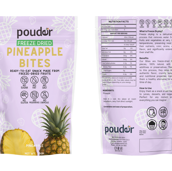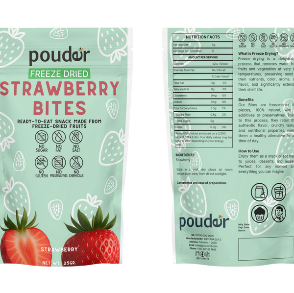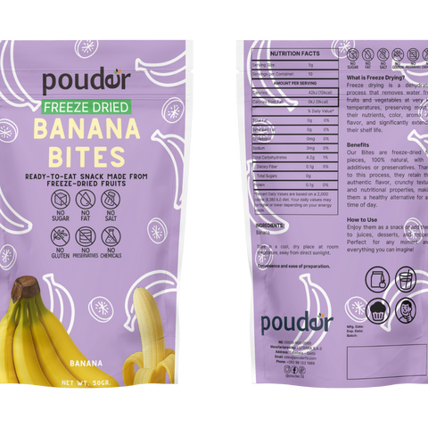 Poudər is a brand of 100% natural, freeze-dried fruit and vegetable powder sand snacks. Made with no additives, no sugar, and no preservatives – just the real ingredients.