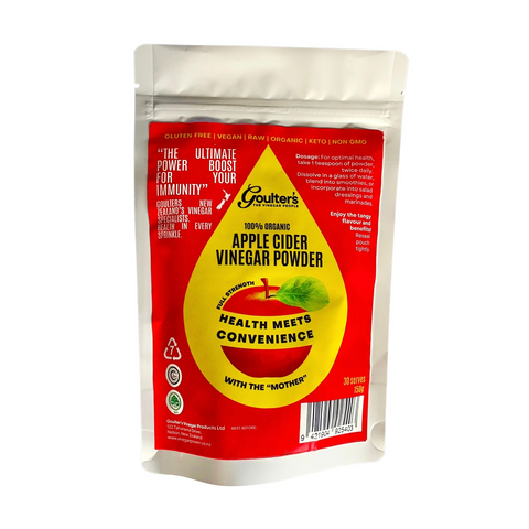 Goulter’s Organic Apple Cider Vinegar Powder delivers full-strength health benefits in a convenient, mess-free format.