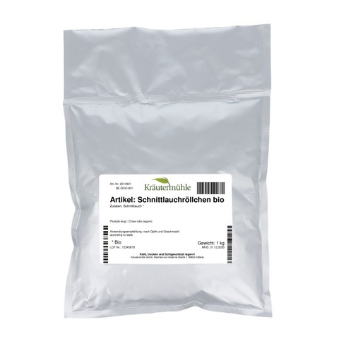 Packaged thoughtfully for bulk usage, these chive rolls are a premium addition to artisan food products, gourmet catering, or upscale retail lines. Experience consistent quality, natural beauty, and culinary versatility with Kräutermühle’s Organic Chives Rolls.