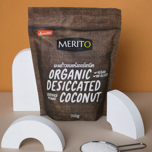 Country Produced : Thailand - Dried coconut flakes (Gluten free), international certified organic. - Organic from the growing process until the bag is sealed. - Suitable for use in baking decorate the dessert, Or use it instead of bread crumbs. - Can be used as an ingredient for cooking. - Product shelf life is 12 months from production date.