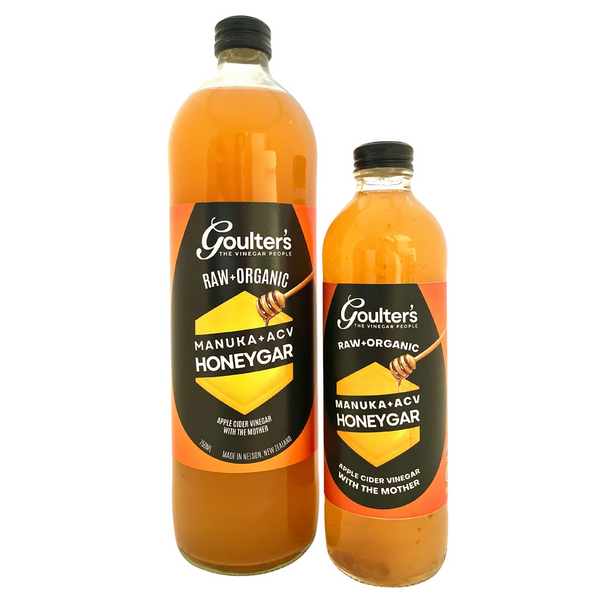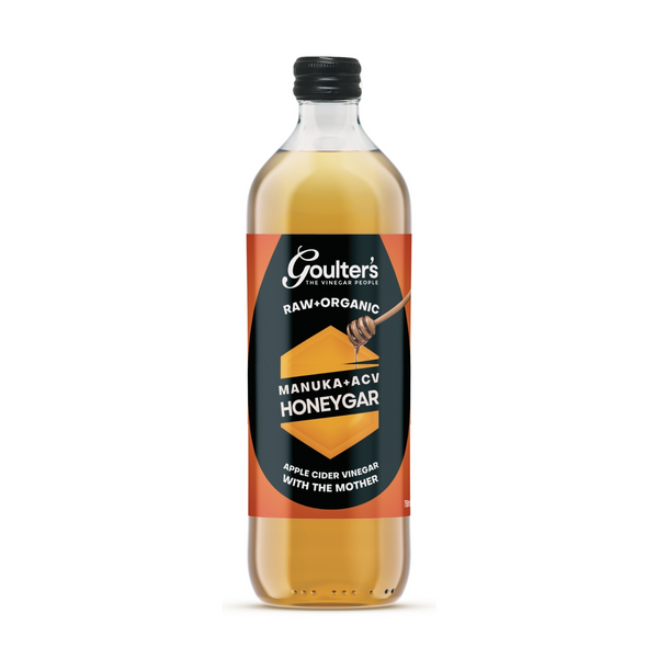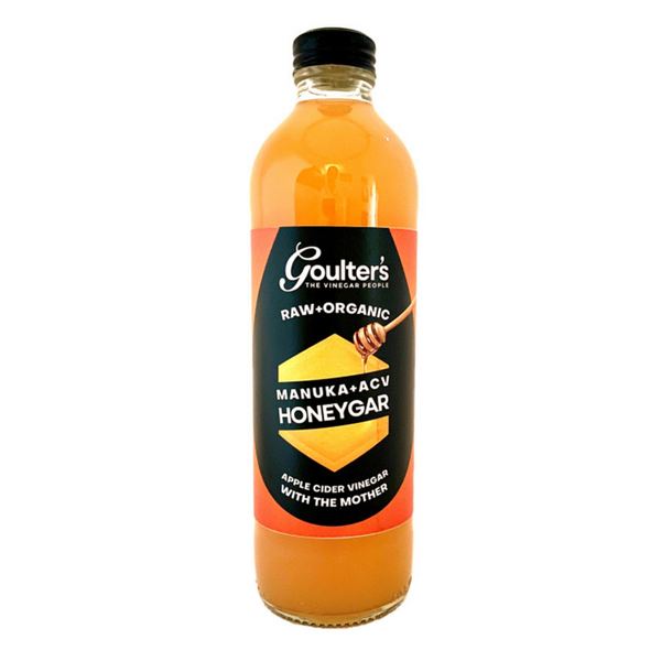 Goulter’s Honeygar contains a delicious mix of Apple Cider Vinegar, Manuka Honey MGO120+ and Honeydew Honey.