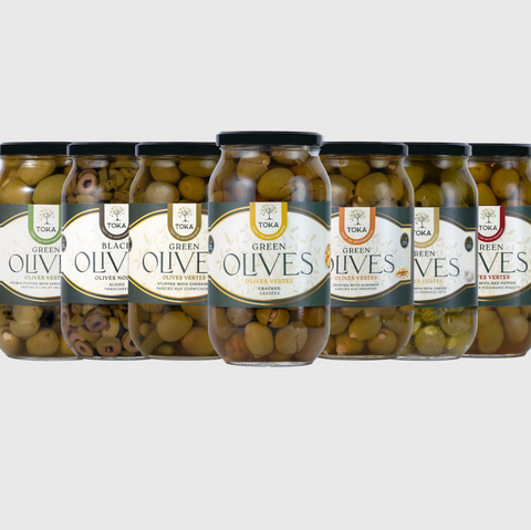 TOKA – The Mediterranean you have never tastedTOKA Stuffed Green Olives combine firm, naturally fermented Albanian olives with flavorful Mediterranean fillings — red pepper, almond, garlic, jalapeño, cheese, lemon, tomato and much more. Each variety is prepared with care to deliver a fresh, balanced taste and consistent quality. Available in 350 g, 1000 g, and 170