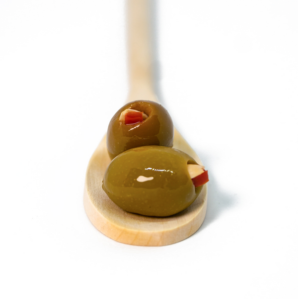 TOKA Stuffed Green Olives combine firm, naturally fermented Albanian olives with flavorful Mediterranean fillings — red pepper, almond, garlic, jalapeño, cheese, lemon, tomato and much more. Each variety is prepared with care to deliver a fresh, balanced taste and consistent quality. Available in 350 g, 1000 g, and 1700 g glass jars, as well as other packaging formats for wholesale distribution.