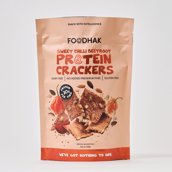 Subtly spicy and crunch in every bite, our Sweet Chilli Beetroot Protein Crackers pack a powerful punch of flavour and 30g protein. Plus with all natural ingredients and plant-based protein, it's a snack you can enjoy again and again.