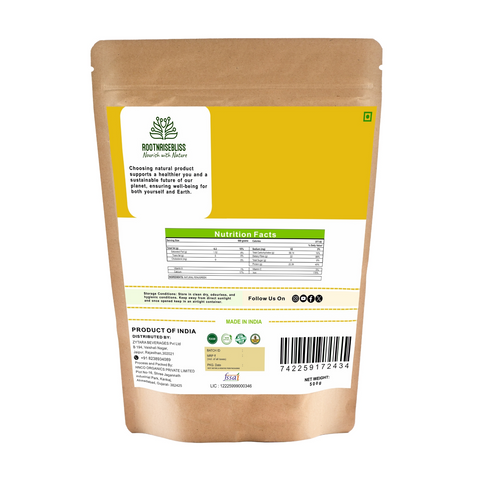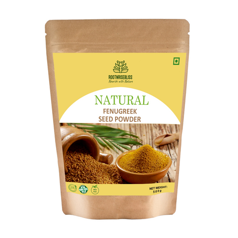 RootnRiseBliss Fenugreek Seed Powder (Methi Powder) is a 100% natural and pure herbal powder made from premium quality fenugreek seeds. Known for its rich nutritional profile, it is a natural source of protein, dietary fiber, iron, magnesium, calcium, and essential vitamins. Regular consumption of fenugreek powder may help in supporting digestion, managing weight, balancing blood sugar levels, and boosting overall immunity. It is also widely used as a natural hair care and skincare remedy, helping reduce dandruff, promoting hair growth, and maintaining clear skin.