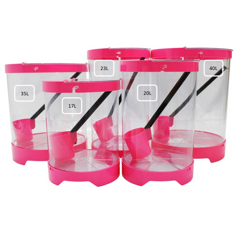 -100% virgin material-Transparent glass-liked appearance- Seamless, no glue, no joint- Come with free scoop- Durable, easy to clean, odourless- Hygienic Ideal for display purpose- Capacity : 17litre, 20 litre, 23 Litre, 35 Litre & 40 Litre