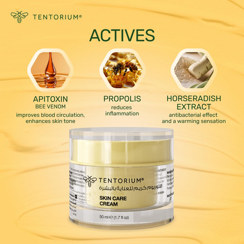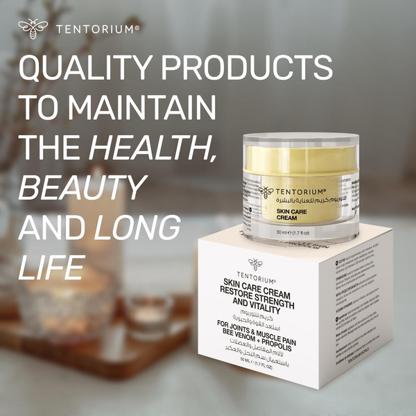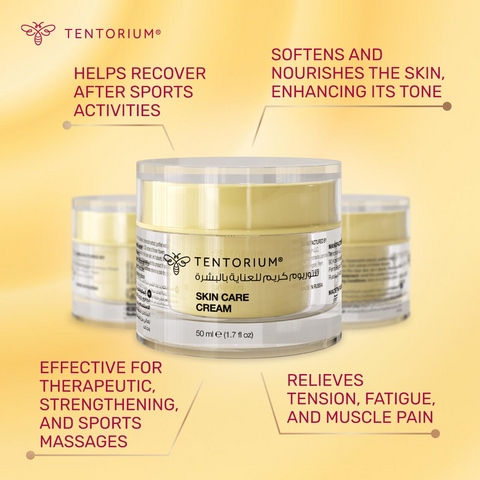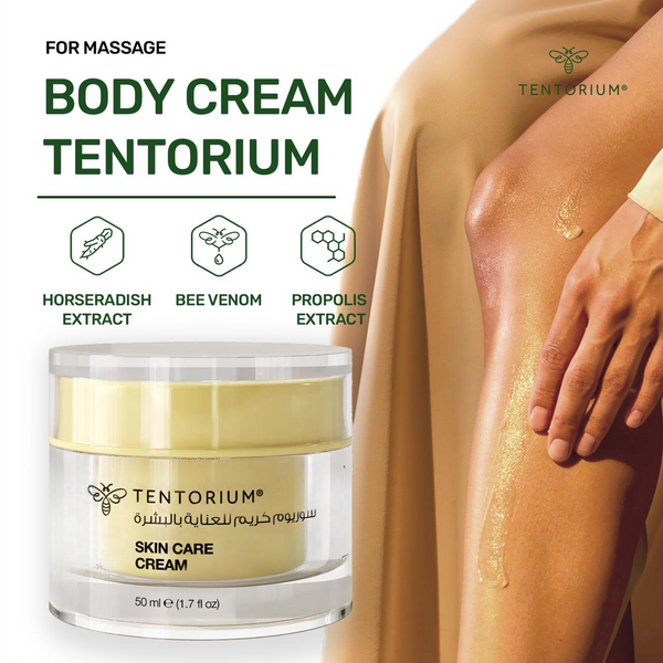 Experience the power of nature’s touch with TENTORIUM Massage Skin Care Cream – a soothing and warming cream infused with bee venom, propolis, and natural plant extracts. Designed to relax tired muscles, relieve joint tension, and support your body’s natural recovery after physical exertion, workouts, or long days.