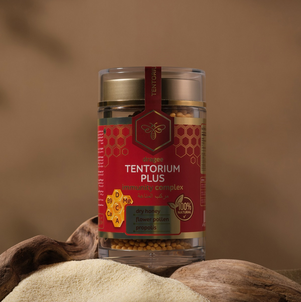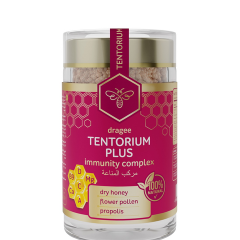 Experience the pure essence of nature with TENTORIUM PLUS, a premium bee-based supplement crafted from dry honey, flower pollen, and propolis concentrate – ingredients cherished for centuries for their restorative and protective properties.