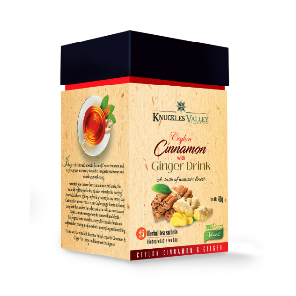 Awaken your senses with our Ceylon Cinnamon & Ginger Drink, a vibrant tribute to nature’s healing power and Sri Lanka’s timeless wellness heritage. Crafted from the tender inner bark of Cinnamomum Zeylanicum and sun-dried Ceylon ginger, this infusion is sourced directly from our Knuckles Valley Plantation gardens—where regenerative farming and 100% transparency from farm to cup ensure purity, sustainability, and authenticity in every sachet.