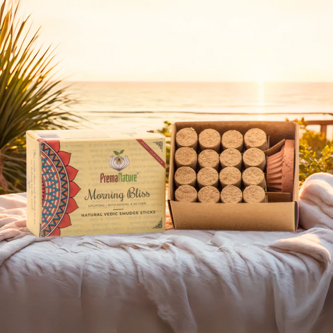 Purify your space with ancient traditions using PremaNature’s Vedic Organic Smudge products. Elevate your surroundings with these steps: