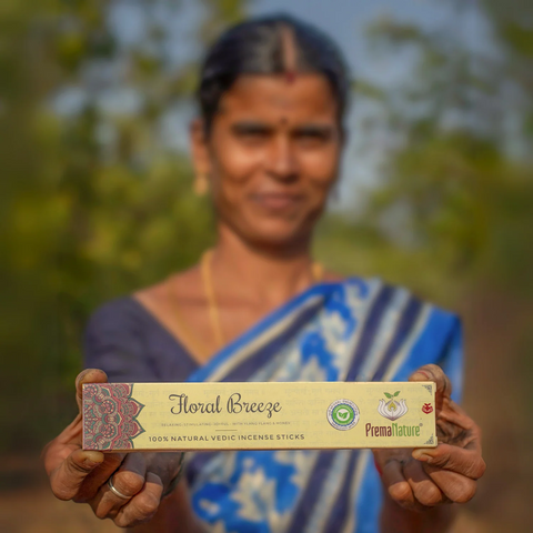 Scent lasts up to 2 hours | Burn time: 40–50 mins34 sticks | 8-inch length | Hand-rolled by rural womenIngredientsOur incense is made with essential oils. Free from DPG, DEP, PVA, Nitrates, Sulfates, Magnesium carbonate, Phtalates, Parabenes, Benzene Derivatives, Synthetic musk, Synthetic dyes etc.