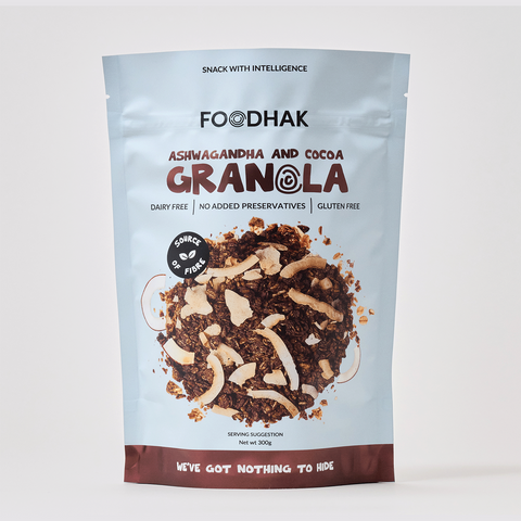 Start your day on a high with our signature Ashwagandha and Cocoa Granola. Packed with coconut chips, a variety of seeds, and the Ayurvedic herb ashwagandha, this granola is vegan, high in fibre and aids with digestion. Expertly crafted and ready to ship straight to your door, this breakfast will keep you going all day.