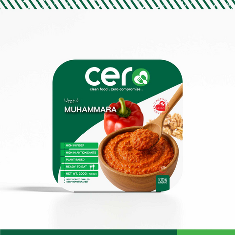 Cero Muhammara is a bold and flavorful blend of roasted red peppers, walnuts, and natural spices—made exclusively with 100% clean label ingredients. No additives, no preservatives—just authentic taste and wholesome goodness.