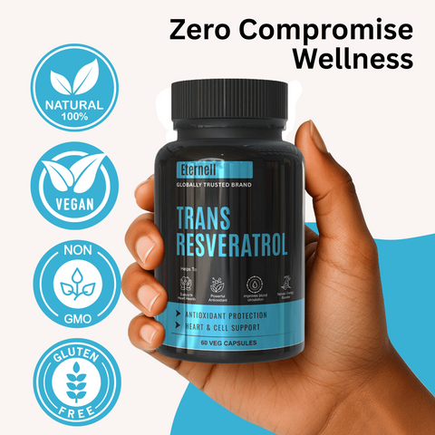 Trans Resveratrol 60 Veg Capsules are packed with 250mg of 98% pure Trans Resveratrol to support heart health, cellular protection, and healthy aging. Made with natural, vegetarian ingredients, each capsule is easy to consume and free from added sugars and preservatives.